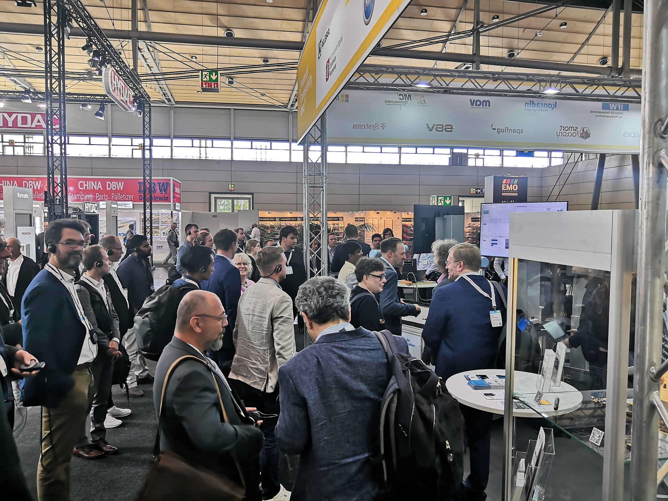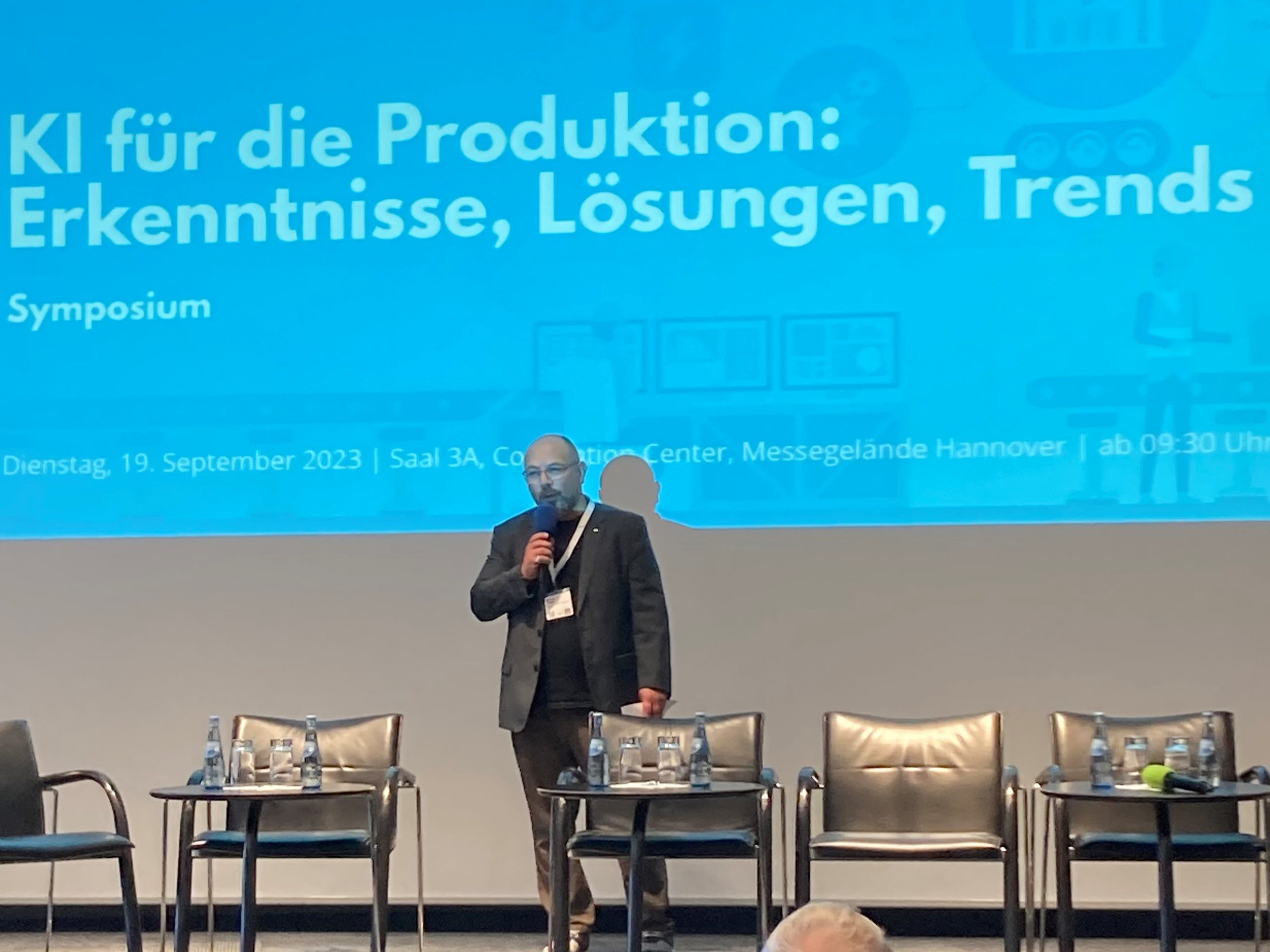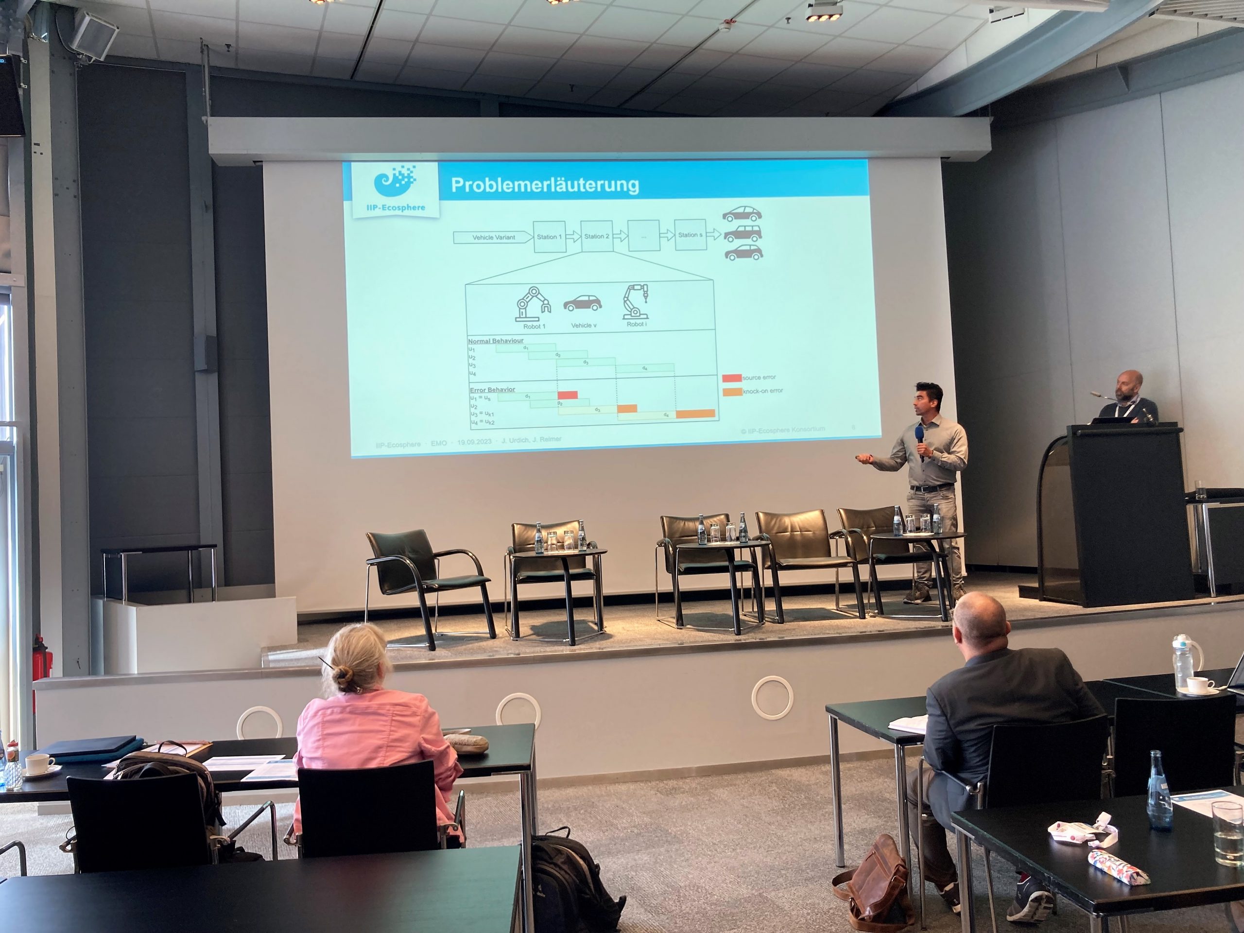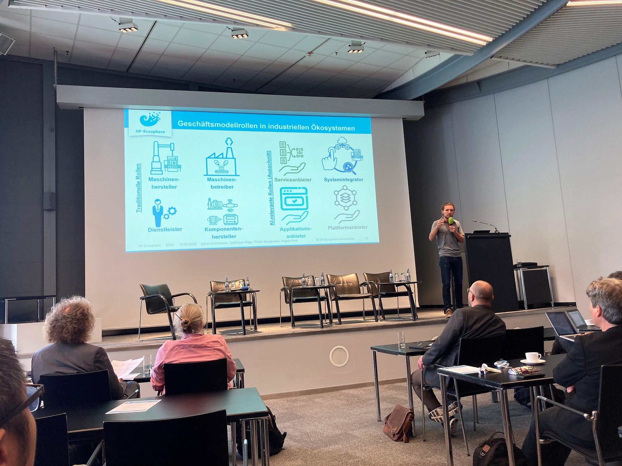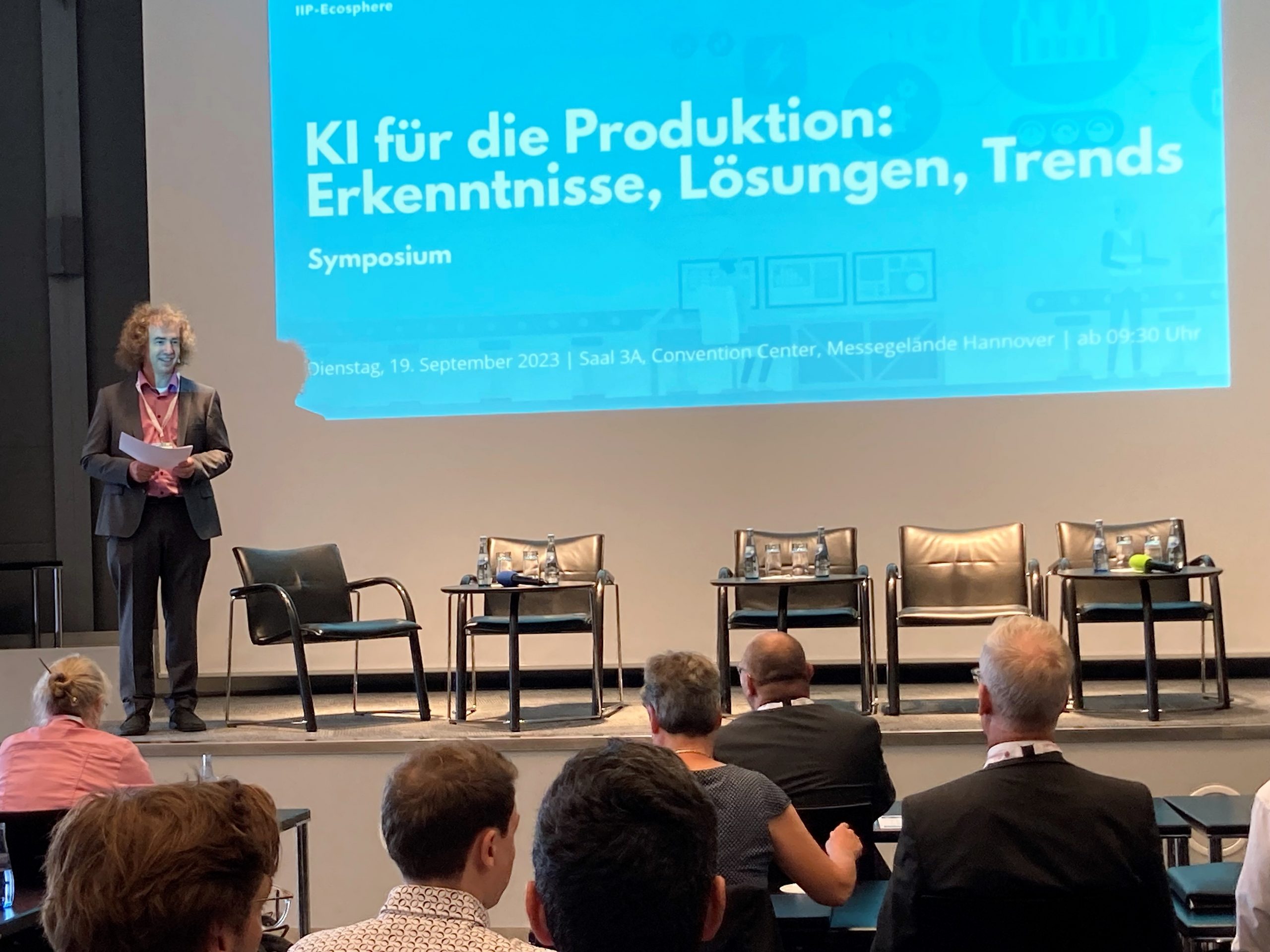 Das Projekt IIP-Ecosphere neigt sich dem Ende entgegen. Zeit für die Beteiligten aus Wirtschaft und Wissenschaft bei einem Symposium ihre Erkenntnisse und Erfahrungen aus dreineinhalb Jahren Forschung, Entwicklung und Anwendung zu KI in der Produktion an ein interessiertes Publikum weiterzugeben. Rund 80 Gäste trafen sich dazu am 19. September im Convention Center auf der EMO, der Weltleitmesse der Produktionstechnologie. In seinem Grußwort würdigte Dr. vom Projektträger DLR die deutsche Produktion und den deutschen Mittelstand mit seinen hidden champions und Weltmarktführern als Stärken des sechsmaligen Exportweltmeisters Deutschland. Er appellierte an die Produktionsunternehmen, den Kontakt zu IIP-Ecosphere aufzunehmen und die Projektergebnisse zu nutzen. Dr. Alexander Broos vom VDW stellte in seinem Grußwort das Thema Daten in den Mittelpunkt, eines der Schlüsselfaktoren für den Erfolg von KI. Die Umfrage von IIP-Ecosphere unter Industrieunternehmen habe ergeben, dass nur 30 Prozent bereit seien, ihre Daten zu teilen. Projektkoordinatorin Dr. Claudia Niederée kam in ihrer Einführung zu dem Schluss, dass Data-Sharing immer noch schwierig sei. Es gebe aber Alternativen. IIP-Ecosphere habe dazu einen wichtigen Beitrag geleistet.